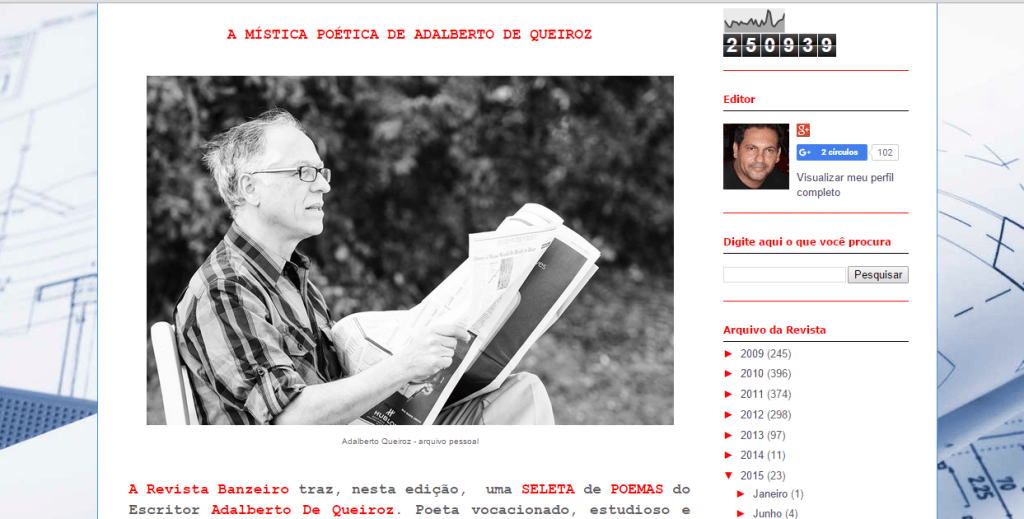 O professor e poeta Francisco Perna Filho, editor da Revista Banzeiro fez uma edição de Seleta de Poemas de minha autoria.