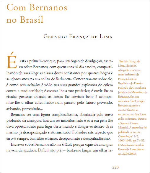 pelo ensaista e crítico francês Juan Asensio, argumentando pela “Presença e Permanência de Georges Bernanos”