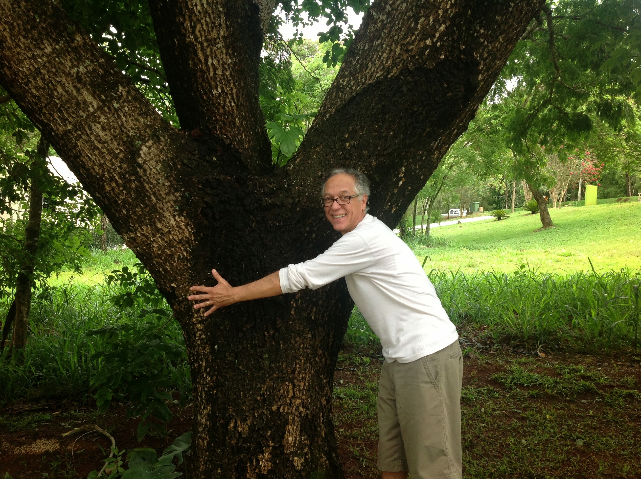 Mudança feita, abraçamo-nos às árvores do novo território. Onde há esse tamburil centenário, abraço-me à terra que nos é dada. Felizes, minha mulher e eu; genros e filhas e netos. Um caloroso abraço que não cessa de me dar alegria.