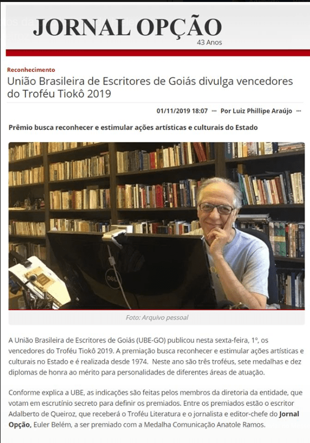 Feliz e agradecido pela escolha do meu nome para Troféu Tiokô 2019.