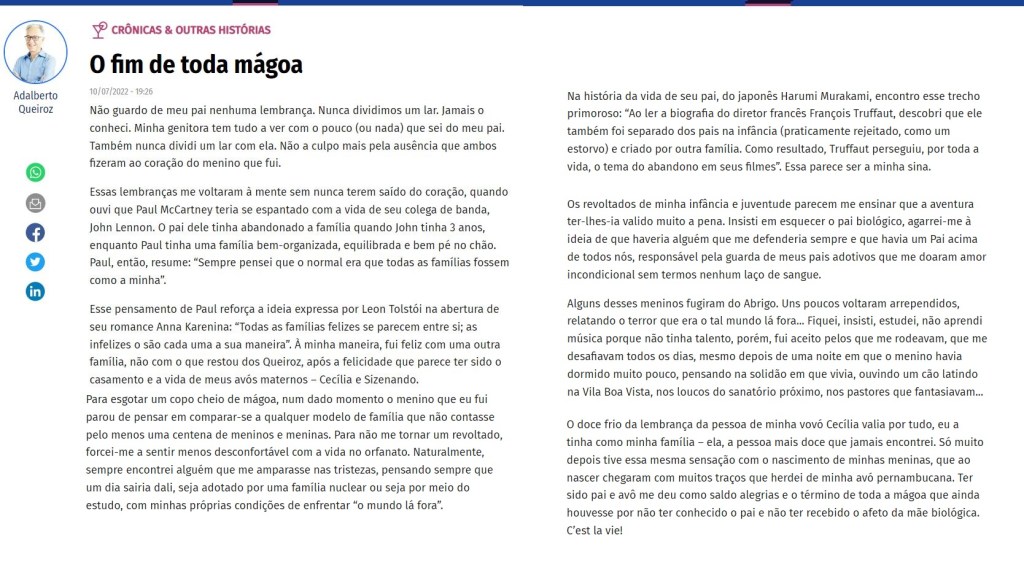 Publicada em O POPULAR, Goiânia (GO), 11 de julho de 2022.
