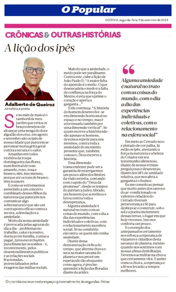 Publicada no Jornal O Popular, de Goiânia, no dia 9 de setembro de 2024.